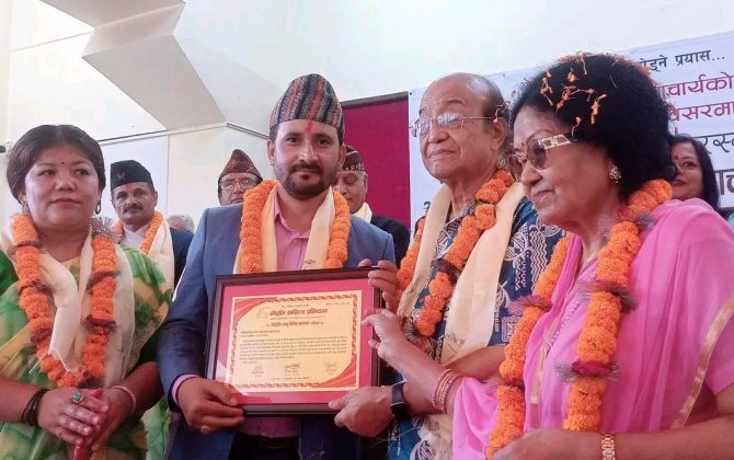 आदिकवि भानुभक्त आचार्यको २०९ औं जन्म जयन्तीका अवसरमा गीतकार तथा गोजुरियो कराते प्रमुख प्रशिक्षक ओमकृष्ण प्रसाईं सम्मानित भएका छन्...