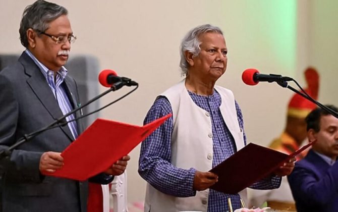 बङ्गलादेशको अन्तरिम सरकार प्रमुख युनुसको शपथ, मन्त्रिपरिषदमा दुई जना विद्यार्थी नेता पनि