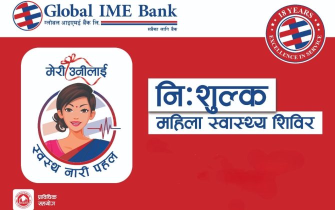 ग्लोबल आइएमई बैंकद्वारा मेरी उनीलाई स्वस्थ नारी पहलअन्तर्गत नि:शुल्क स्वास्थ्य शिविर सञ्चालन