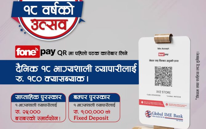 ग्लोबल आइएमई बैंकको १८औं वार्षिकोत्सवको अवसरमा फोनपे क्यूआरमा आवद्ध मर्चेन्टलाई विषेश उपहार योजना