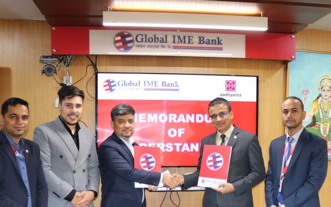 ग्लोबल आइएमई बैंक र आध्यान्त फण्ड म्यानेजमेन्ट बीच कर्जा प्रवाह सम्बन्धी सम्झौता