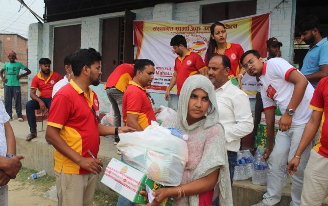 महालक्ष्मी विकास बैंकद्वारा महोत्तरी आगलागि पिडितलाई राहत सामाग्री वितरण