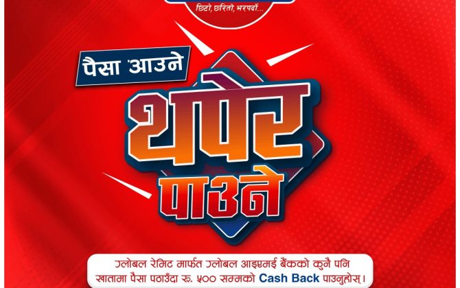 ग्लोबल आइएमई बैंकको “पैसा आउने, थपेर पाउने” योजना, ग्लोबल रेमिटमार्फत पैसा पठाउँदा विशेष क्यासब्याक