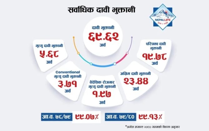 नेपाल लाइफद्वारा ६९.६२ अर्बको दावी भुक्तानी, मृत्यु दावी भुक्तानी ३ दिनभित्र