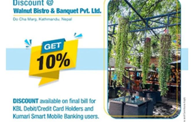 कुमारी बैंक र वलनट बिस्ट्रो एण्ड ब्यानक्वेटबीच छुट सम्झौता