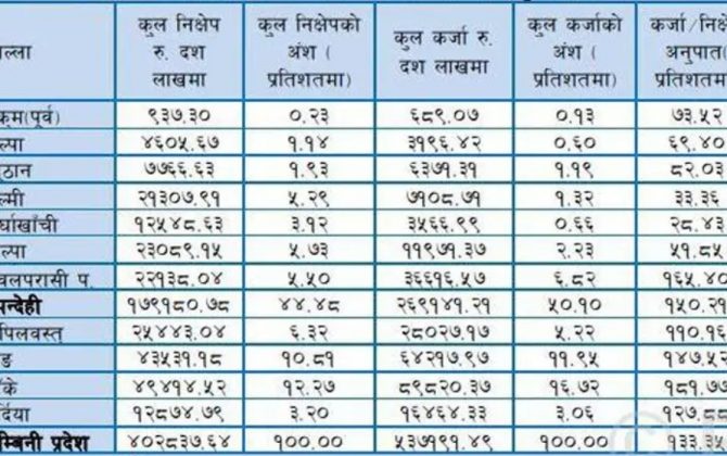 बैंकमा पैसा राख्नेमा रुपन्देही अघि, रुपन्देहीको मात्रै ४४ प्रतिसत