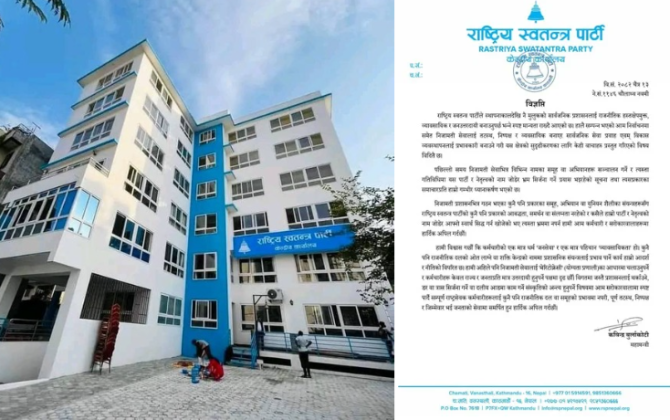 काठमाडौं । राष्ट्रिय स्वतन्त्र पार्टी (रास्वपा) ले निजामती सेवामा कुनै पनि प्रकारको राजनीतिक हस्तक्षेप, आबद्धता वा समर्थन नरहेको स्पष्ट...