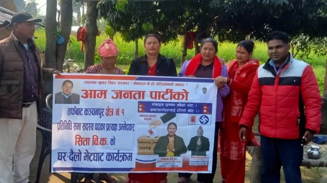 कञ्चनपुरमा आजपा उम्मेदवार सीता विकको चुनावी भेटघाट एवं छलफल तिब्र