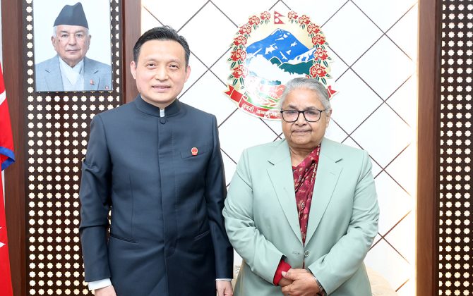 काठमाडौँ, १५ फागुन । प्रधानमन्त्री सुशीला कार्कीसँग नेपालका लागि चीनका राजदूत चाङ माओमिङले आज शिष्टाचार भेट गर्नुभएको छ ।...