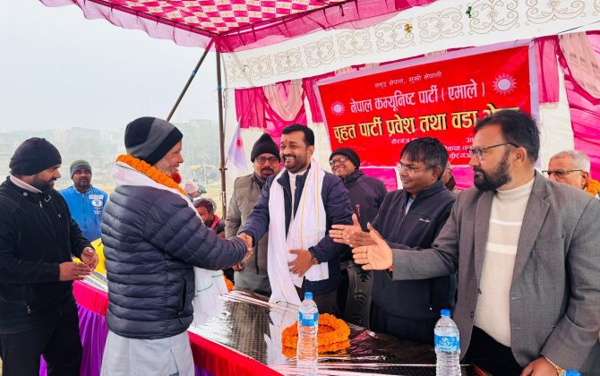 वीरगंज –२ का पूर्ववडाध्यक्ष शेख अब्बास एमालेमा प्रवेश, प्रदीप यादवद्वारा स्वागत
