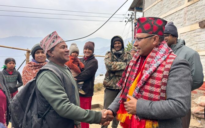रामेछापका एमाले उम्मेदवार माधव ढुङ्गेल पार्टीको आन्तरिक बैठक र घरदैलो अभियानमा