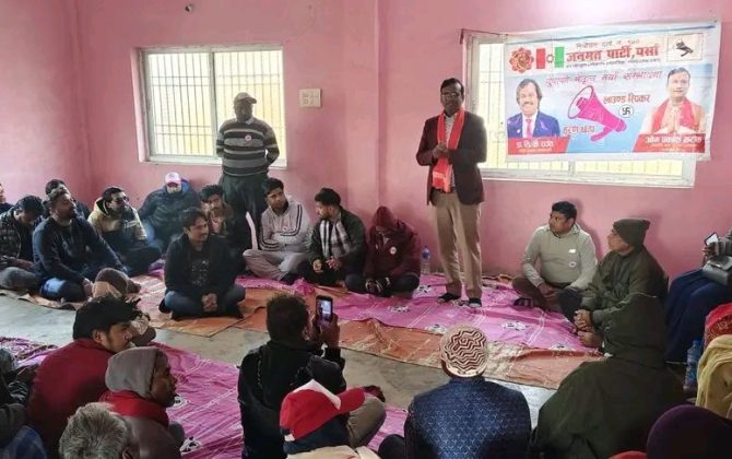 पर्सा–१ मा जनमत पार्टीको घरदैलो अभियान तीव्र, वीरगंज–१६ मा ओमप्रकाश सरार्फको भव्य स्वागत