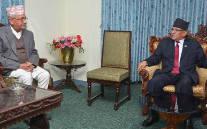 प्रधानमन्त्री दाहाल र अध्यक्ष ओलीबीच भेटवार्ता