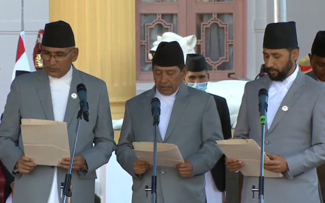 प्रधानमन्त्रीसहित तीन उपप्रधानमन्त्रीले लिए शपथ