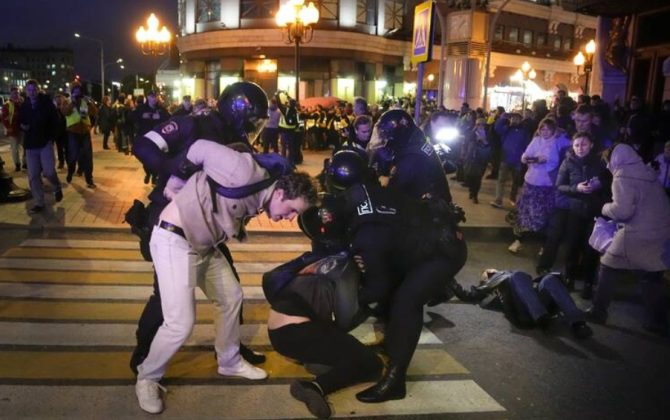 रुसी राष्ट्रपति भ्लादिमिर पुटिनले तीन लाख सेना परिचालन गर्ने घोषणा गरेपछि रुपमा प्रदर्शन भएको छ । प्रदर्शनमा सहभागी एक...