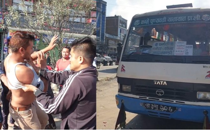 गाडी तोडफोड गर्ने बन्दकर्तालाई चालक र सहचालकले कुटपिट गरी प्रहरीको जिम्मा लाए