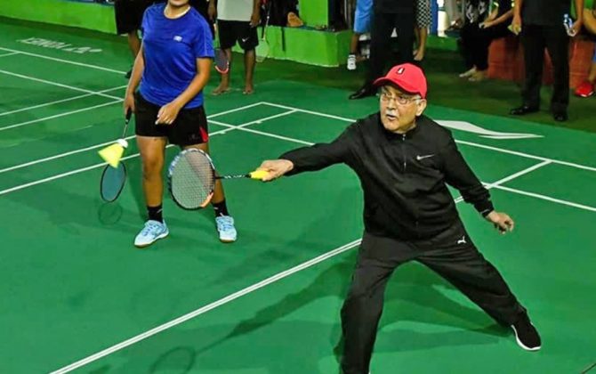 झापाको ब्याडमिन्टन कोर्टमा ओलीको एक घन्टा