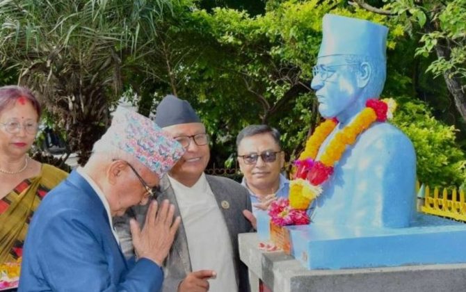 अध्यक्ष ओलीद्वारा पुष्पलालको शालिकमा माल्यापर्ण (फोटो फिचर)