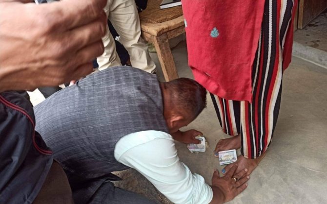 मतदाताको पाउमा हजारकाे नोट राखेर भोट माग्दै मेलम्चीका कांग्रेस उम्मेदवार