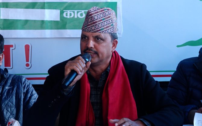 कांग्रेस कार्यवाहक सभापति खड्काले पत्रकार सम्मेलन गर्दै