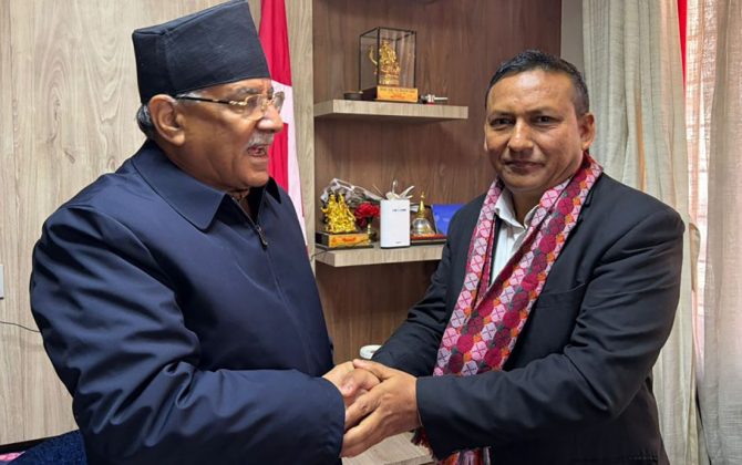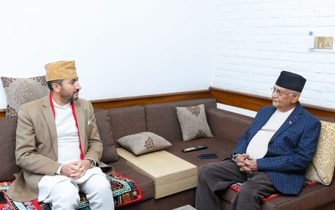 एमाले अध्यक्ष ओलीलाई भेट्न गुण्डु पुगे संचारमन्त्री खरेल