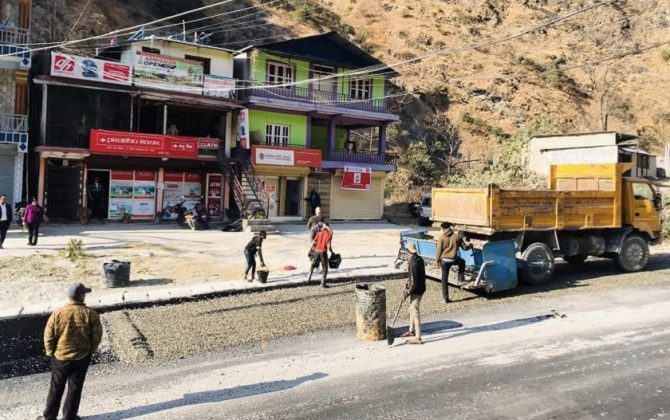 म्याग्दीको महभीर-पोखरेबगर खण्डमा कालोपत्र सुरु