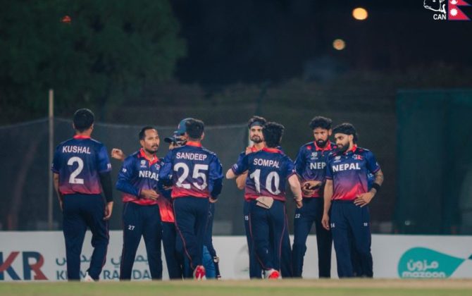 काठमाडौँ, १३ कात्तिक । आईसीसी विश्वकप क्रिकेट लिग–२ अन्तर्गत आज संयुक्त अरब इमिरेट्स (युएई) विरुद्धको खेलमा नेपालले टस जितेर...