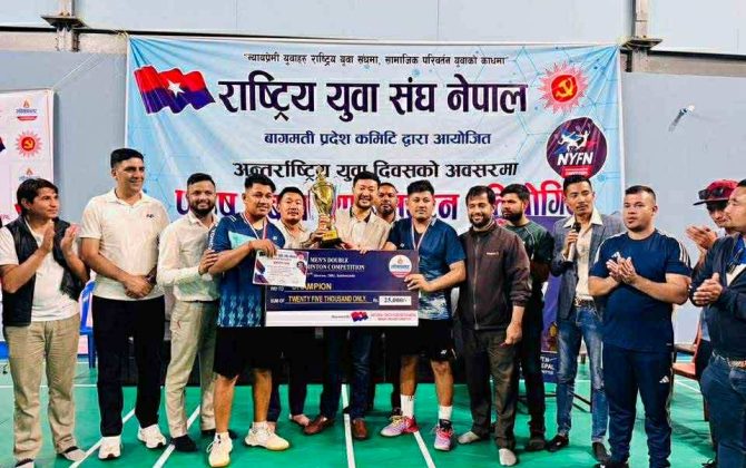 अन्तर्राष्ट्रिय युवा दिवसमा मेन्स डबल ब्याडमिन्टन प्रतियोगिता सम्पन्न