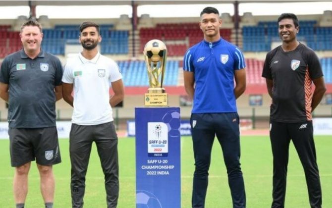 २० वर्षमुनिको साफ च्याम्पियनसिप फुटबलको उपाधिका लागि भारत र बङ्लादेश खेल्दै
