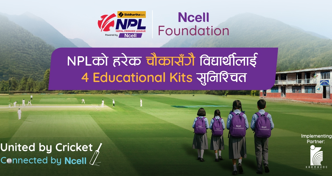 एनसेल फाउन्डेसनद्वारा एनपीएल सिजन २ का चौकासँग जोडिएर हजारौँ विद्यार्थीलाई शैक्षिक सामग्री प्रदान गर्ने घोषणा
