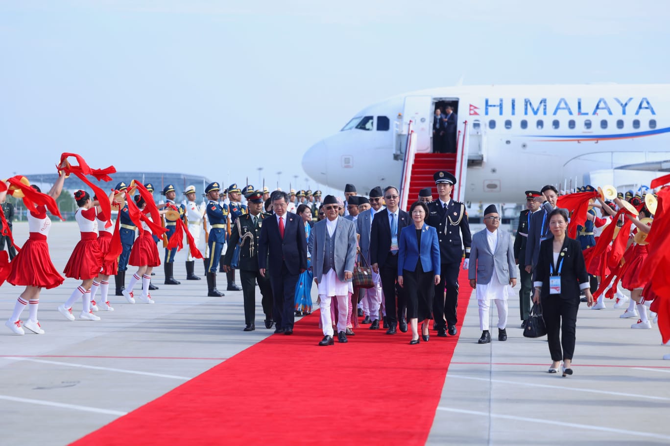 मित्रराष्ट्र चीनका राष्ट्रपति सी जिनपिङको मैत्रीपूर्ण निमन्त्रणामा नेपाली प्रतिनिधिमण्डलको नेतृत्व गर्दै प्रधानमन्त्री ओली स्थानीय समय अनुसार दिउँसो ३ः१५ बजे हिमालय एयरलाइन्सनको विशेष विमानमार्फत थियानजिन विनहाइ अन्तर्राष्ट्रिय विमानस्थलमा आइपुगेका हुन् ।