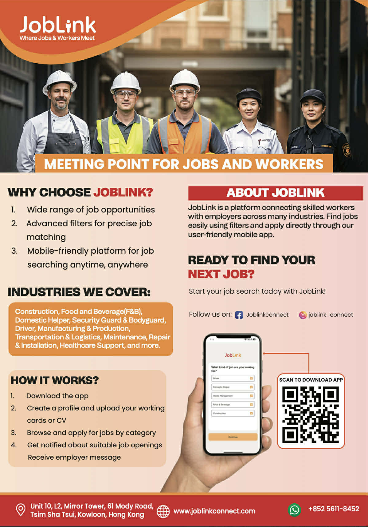 हङकङको नेपाली समुदायभित्र JobLink Connect को व्यापक प्रचार–प्रसार गरी सकेसम्म धेरैलाई लाभान्वित गराउन सहयोग गर्न संस्थापक टिमले आग्रह गरेको छ।