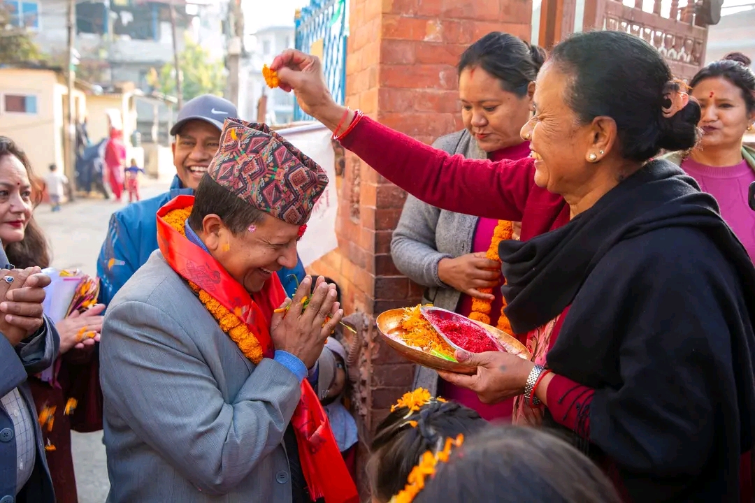 • काठमाडौँ । आज २०८२ फागुन ०६ गते काठमाडौँ महानगरपालिका–१४ बल्खु क्षेत्रमा आयोजित घरदैलो कार्यक्रममा  डा. अजय क्रान्ति शाक्यलाई स्थानीयवासीले  माया, साथ र आशिर्वाद प्रदान गरेका छन्।