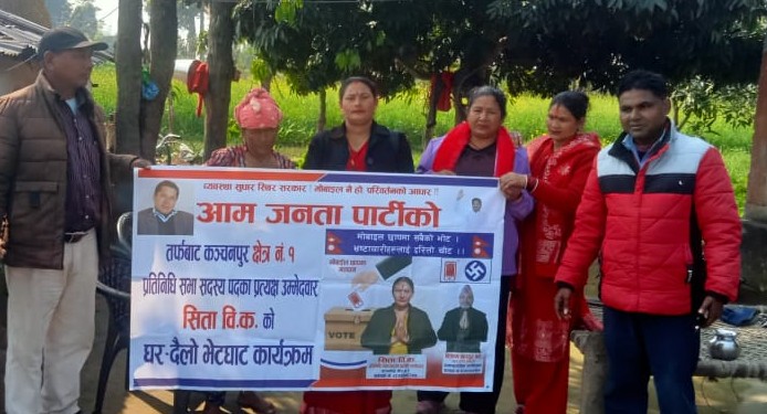 कञ्चनपुरमा आजपा उम्मेदवार सीता विकको चुनावी भेटघाट एवं छलफल तिब्र